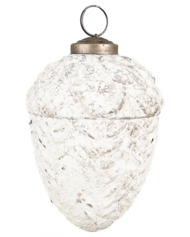 Skleněná vánoční ozdoba v elegantně bílé barvě. Povrch je rýhovaný, zvýrazněn třpytivými bílými glitry. Působí decentně a zároveň slavnostně. Krásně odráží světlo a dodá Vašemu stromku kouzelný zimní nádech.