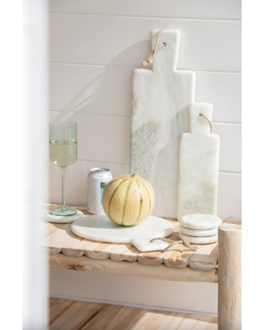 Elegantní prkénko z přírodního mramoru zaujme svou jedinečnou kresbou v odstínu bílé se zeleným nádechem. Skvěle poslouží jako servírovací talíř např. na sýry.