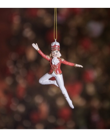 Vánoční ozdoba Louskáček 11 cm Červenobílá polyresinová vánoční ozdoba na stromeček