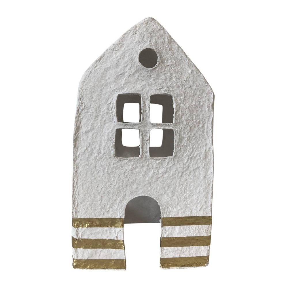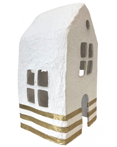 Domeček z papírmaše bílý zlaté linky 30 cm