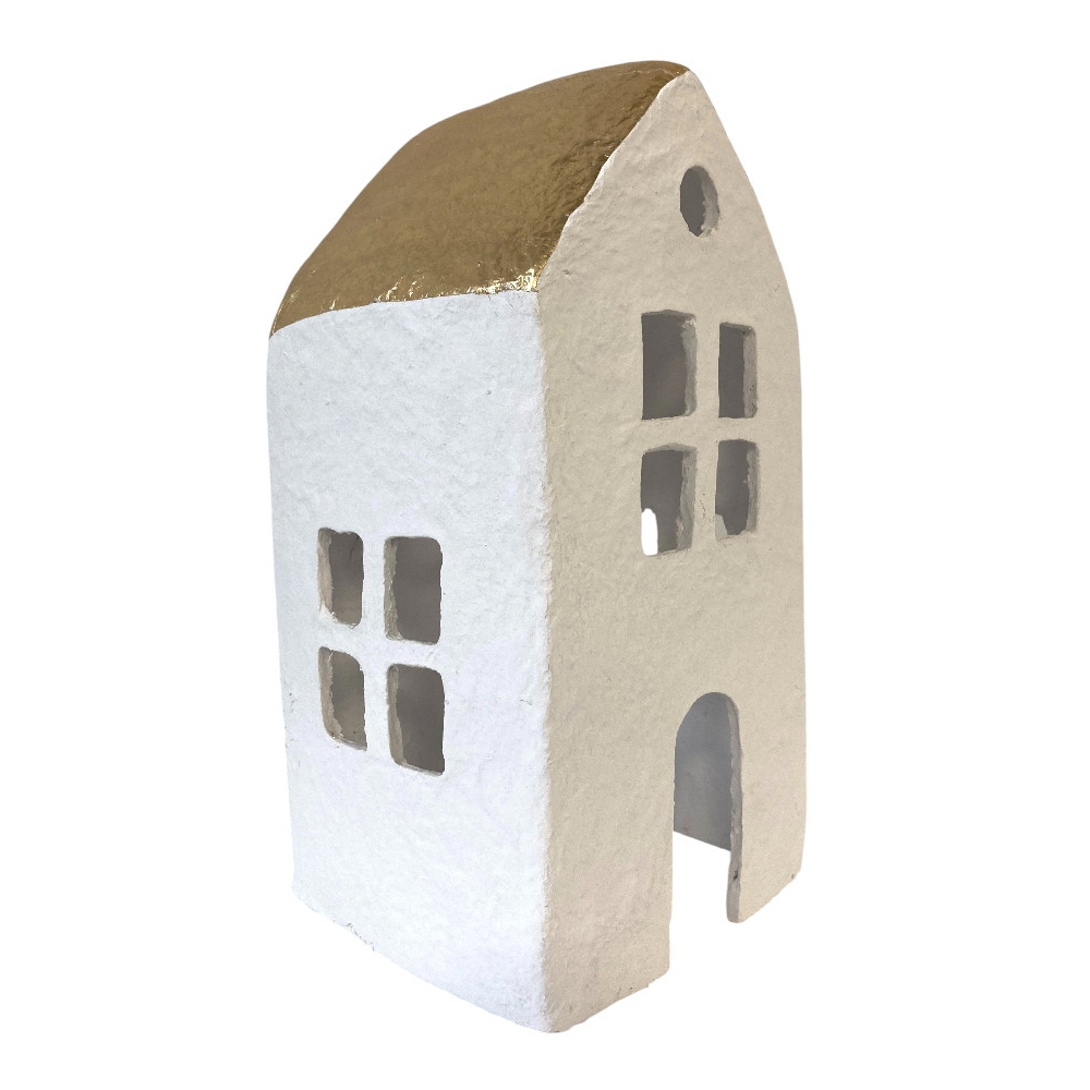 Domeček z papírmaše bílý zlatá střecha 38 cm
