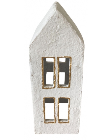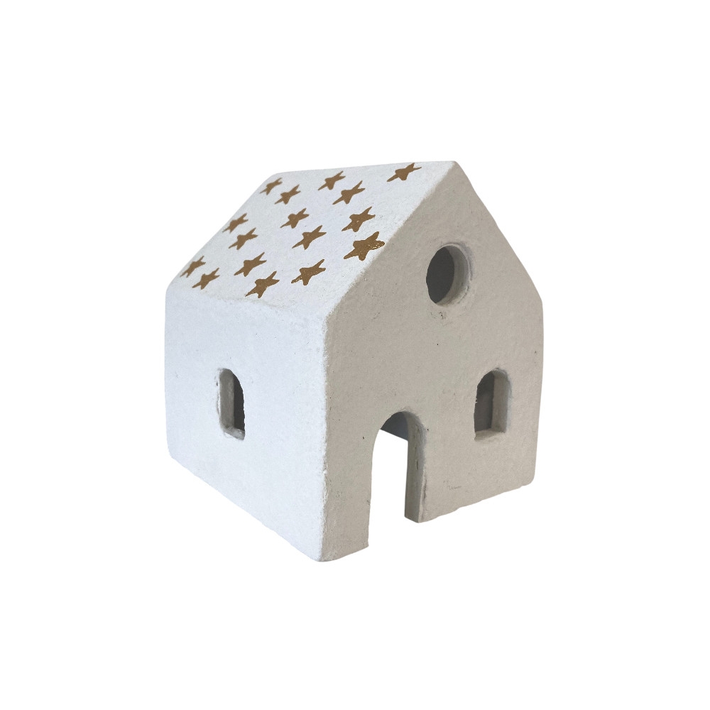 Domeček z cotton-maché bílý zlaté hvězdičky velký