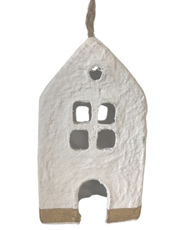 Domeček z cotton-maché bílý zlaté hvězdičky malý
