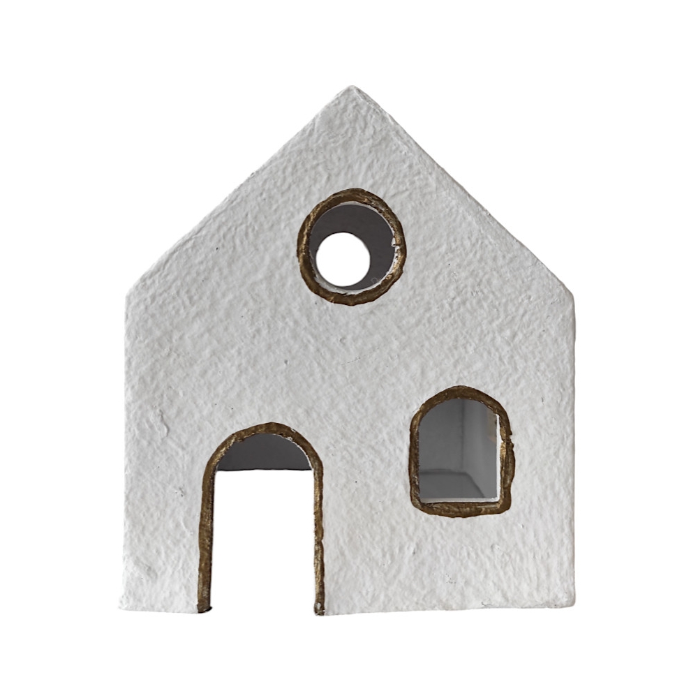 Domeček z cotton-maché bílý se zlatými detaily malý