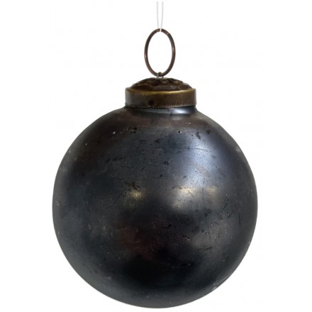 Černá skleněná vánoční ozdoba s patinou o velikosti 7 cm.