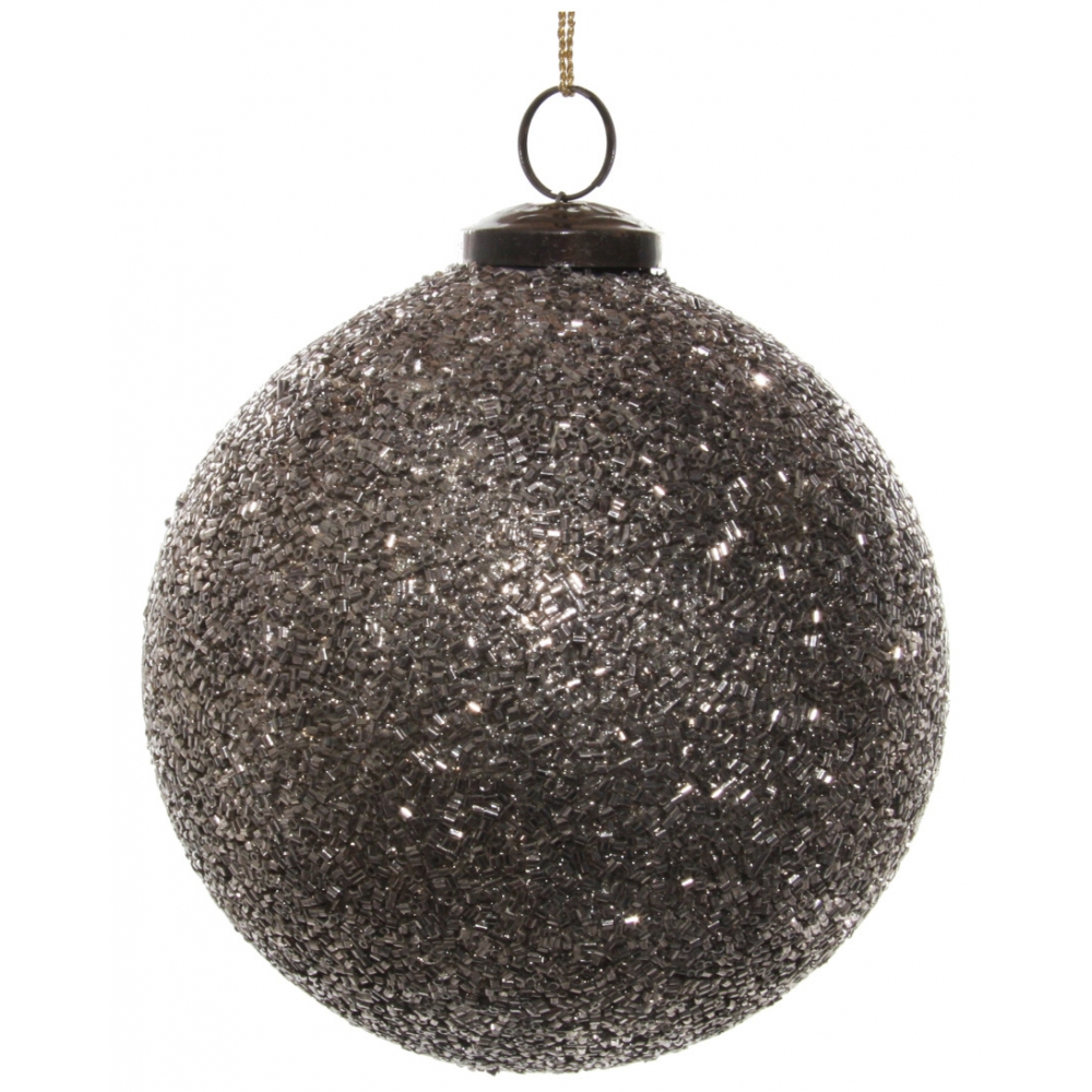 Skleněná koule dlouhá korálková tmavě stříbrná 12cm