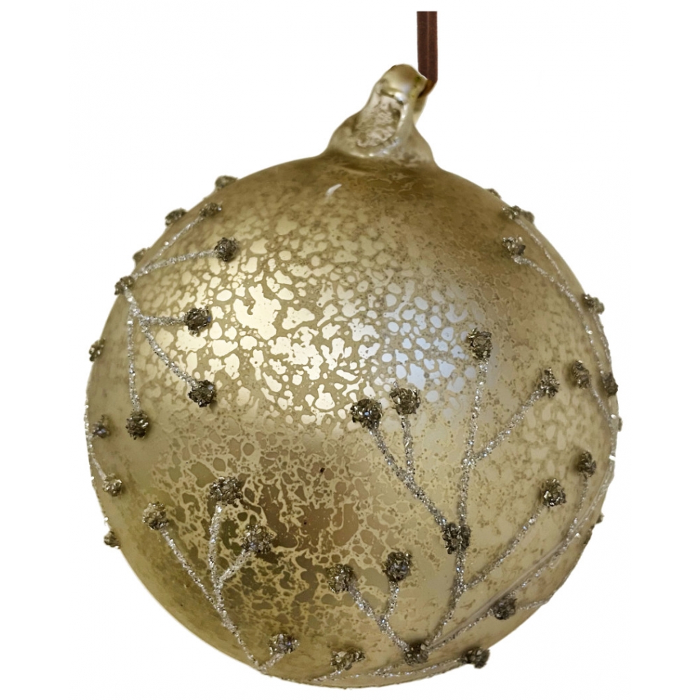 Ozdoba skleněná antique champagne s větvičkama 10 cm