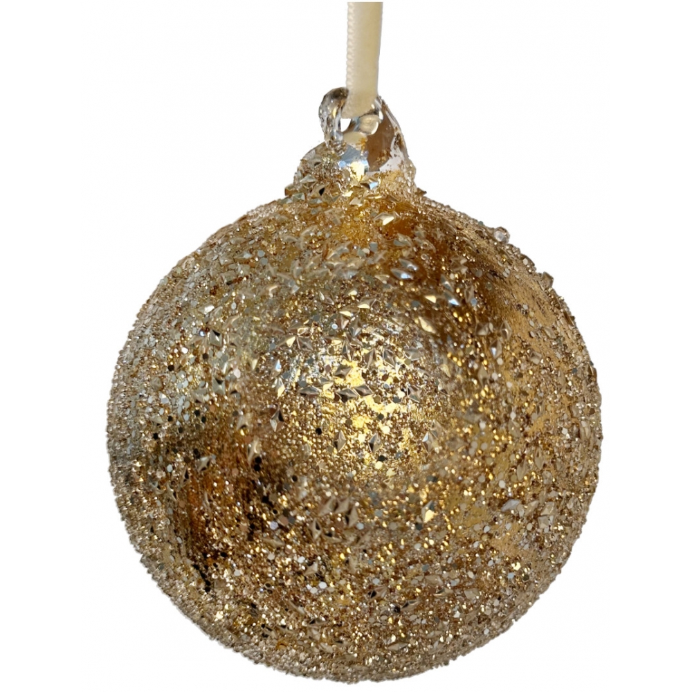 Ozdoba skleněná zlatá třpytivá 8 cm
