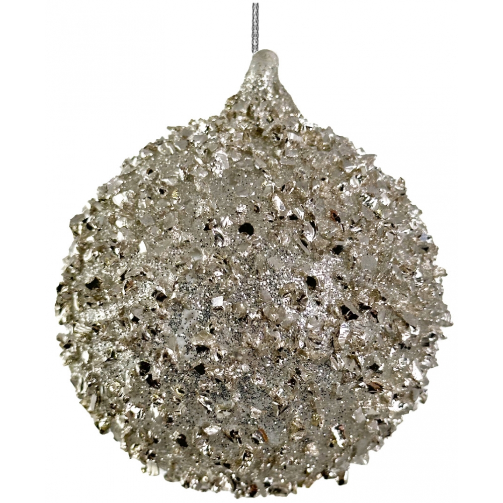 Ozdoba skleněná stříbrná se třpytkami 8 cm