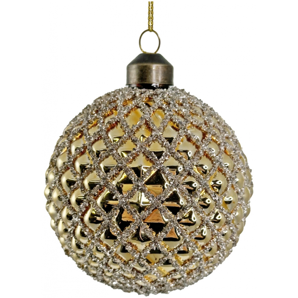 Ozdoba skleněná zlatá se stříbrnými třpytkami 8 cm