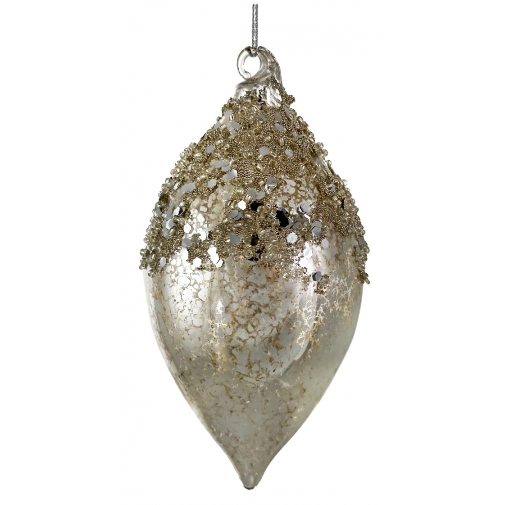 Ozdoba kapka skleněná stříbrná antique s korálky 12 cm