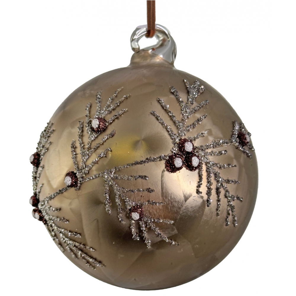 Ozdoba skleněná hnědá ledová s třpytivou větvičkou 10 cm