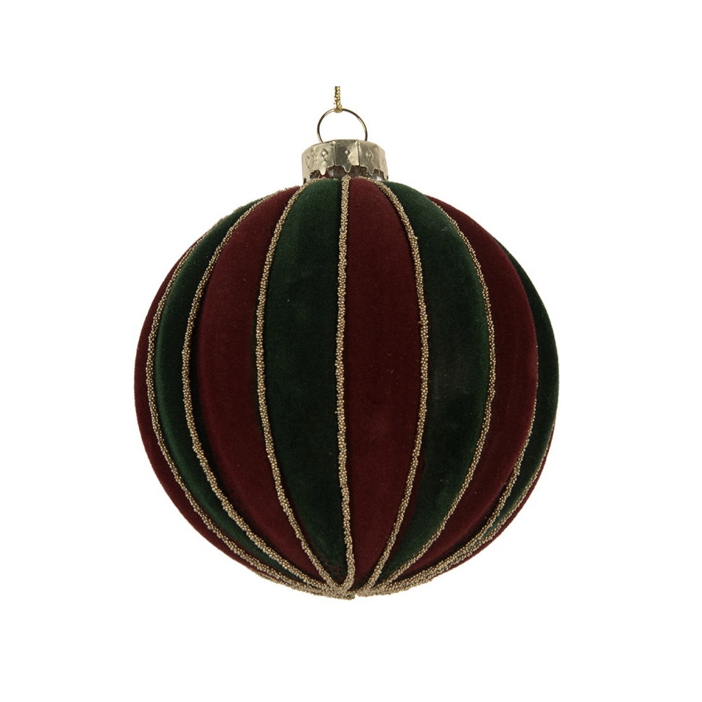 Ozdoba skleněná červeno-zelená samet 8 cm