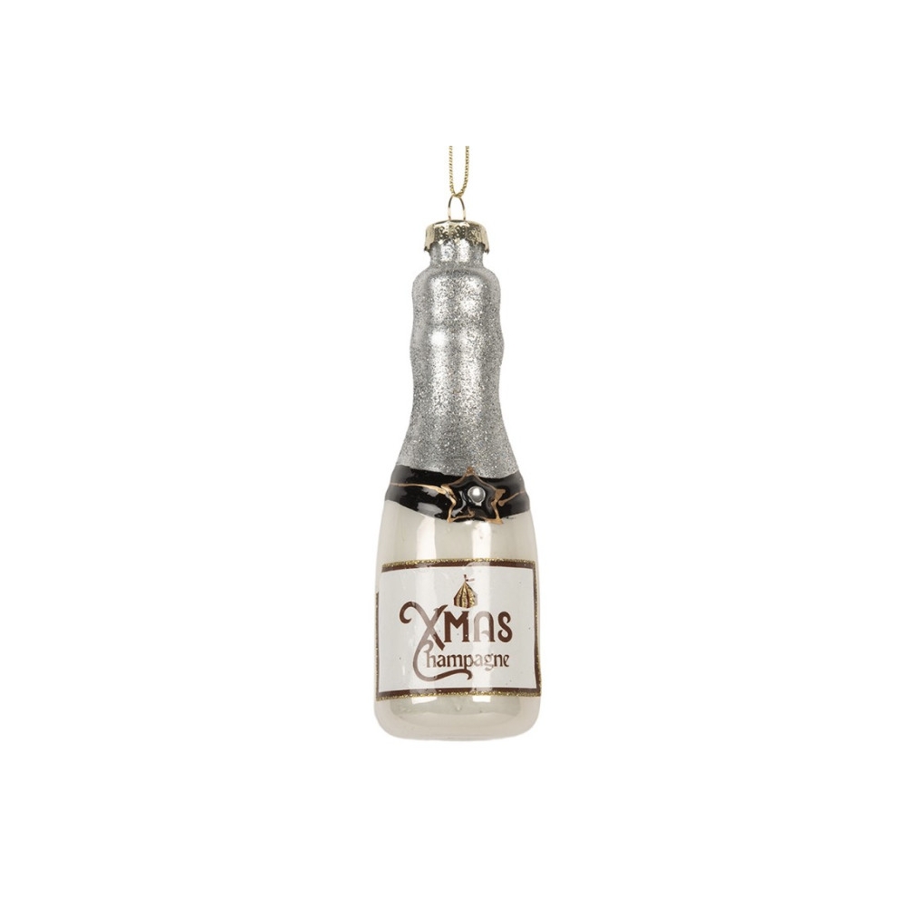 Ozdoba skleněná Láhev šampaňského sříbrná 13 cm