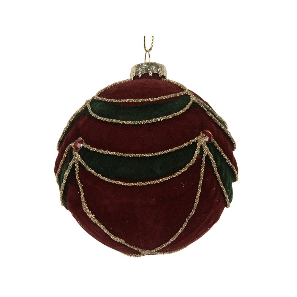 Ozdoba skleněná červeno-zelená samet 8 cm