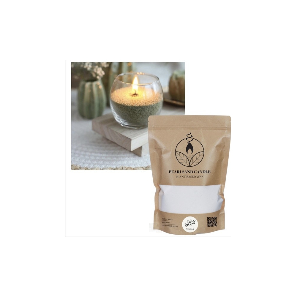 Vosk bílý rostlinný sypaný granulát vanilka svíčka Písek voskový 400g vanilka (4 knoty 15cm)