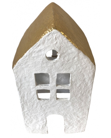 Domeček s LED osvětlením porcelánový béžový 9 x 6 x 15 cm