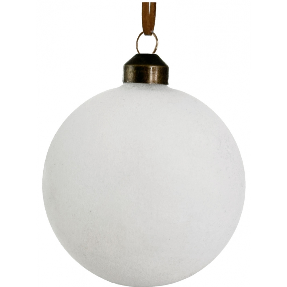 Nadčasová skleněná vánoční ozdoba v elegantní bílé barvě s jemným sametovým povrchem.