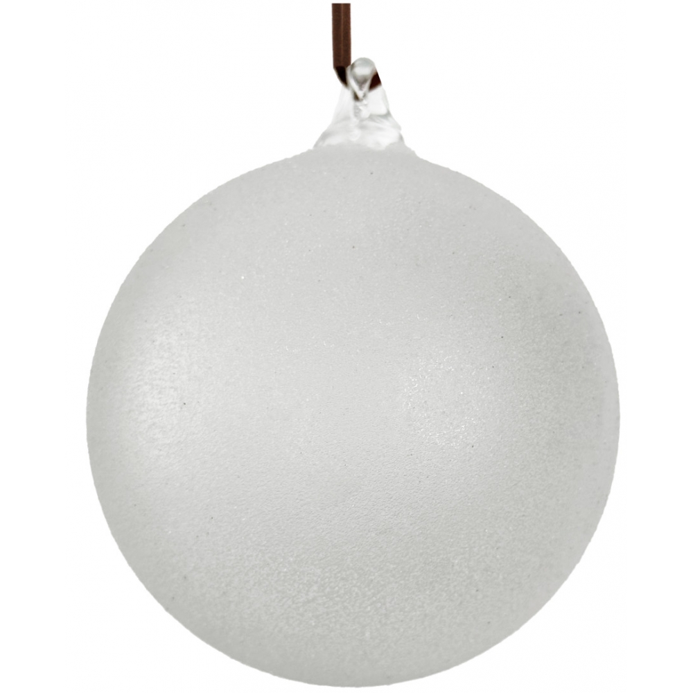 Skleněná vánoční ozdoba s elegantním "pocukrovaným" povrchem. Jemný třpyt vytváří dojem zasněžené koule a při dopadu světla září. Univerzální a nadčasová ozdoba, která dodá Vašemu stromečku i vánoční výzdobě kouzelnou zimní atmosféru.