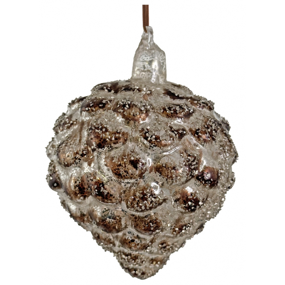 Skleněná vánoční ozdoba ve tvaru šišky v elegantním stříbrném odstínu antique.