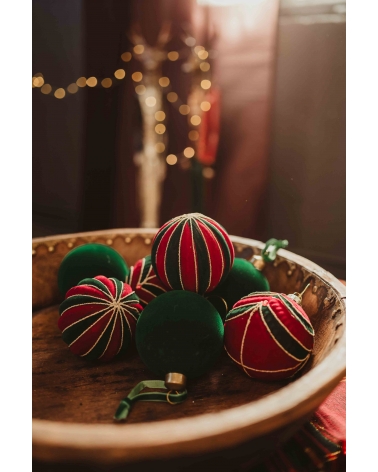 Krásně zpracovaná skleněná ozdoba v červeno-zeleném odstínu se sametovým povrchem. Tradiční sváteční motiv, který vnese do interiéru hravou eleganci a slavnostní atmosféru.