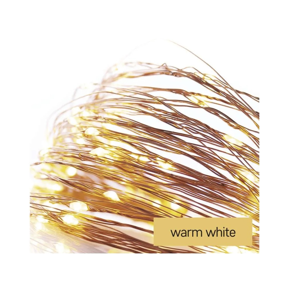LED Vánoční nano řetěz měděný, 0,9 m, 2 x AA, vnitřní, teplá bílá, časovač