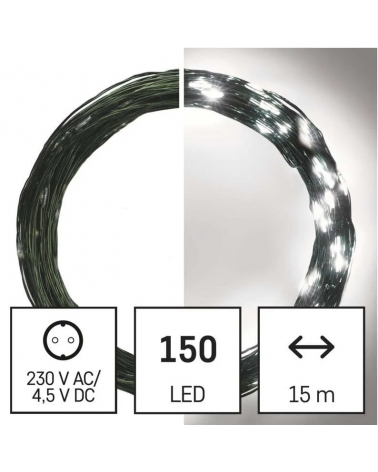 LED Vánoční nano řetěz zelený, 15 m, venkovní i vnitřní, studená bílá, časovač